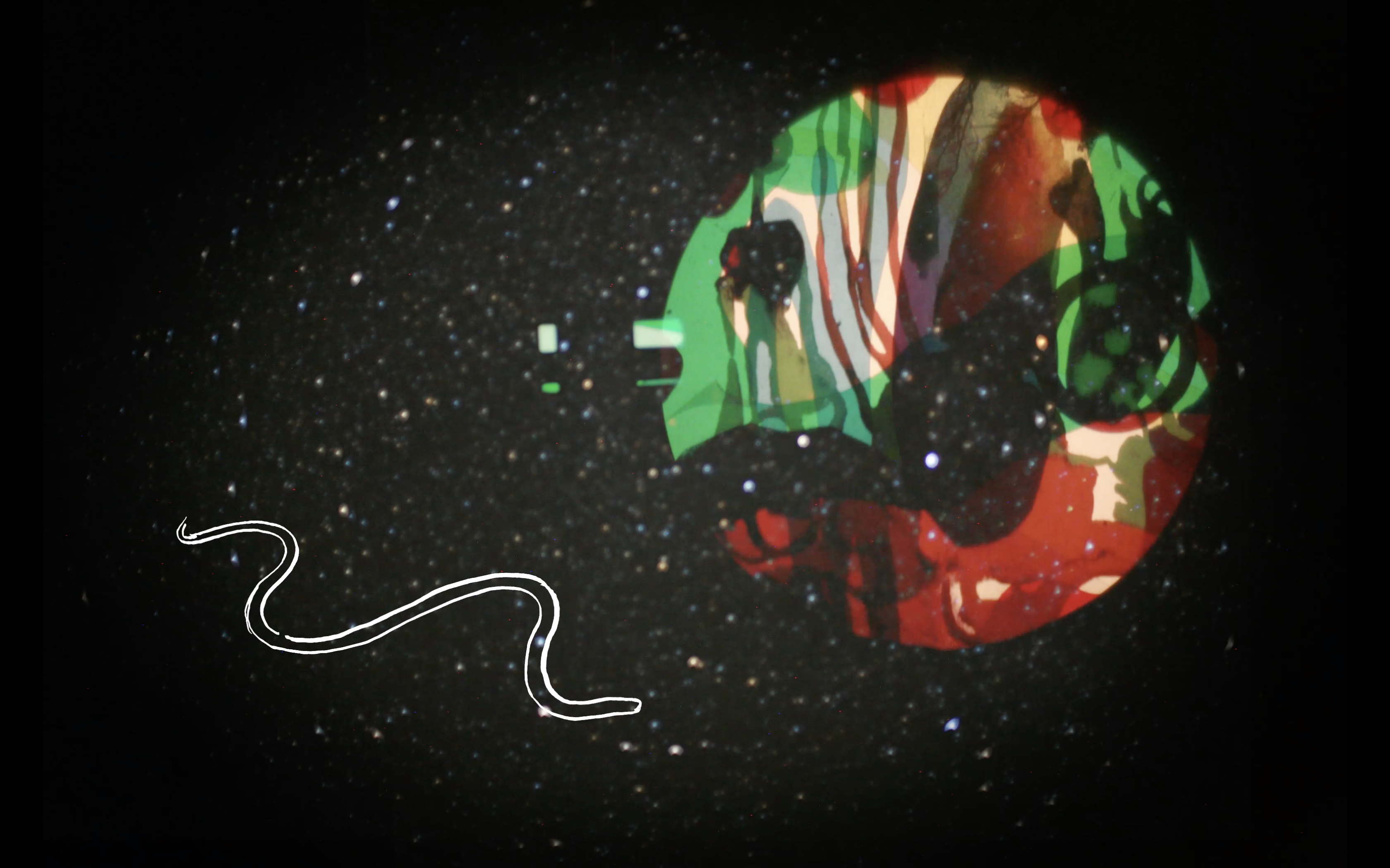 Bill asked me if I wanted to make a video for one of the tunes on his and Nathans record, we imagined breaking the song up into a serialized set of shorts and left it to ponder for a while. Then, this last June, while hanging out in a cabin in northern Michigan, I witnessed a large brown (or common) water snake give birth to living snakes! It’s a truly wild thing to see and I became infatuated with ovoviviparous snakes. The idea that these creatures were born into their own egg universes, then released into a second cavern of the mothers body, and then finally released out into the untethered world. I couldn’t get the image out of my mind. I started imagining vast networks of snakes like giant rhizomorphs emanating from some larger central snake body. With little wigglers spreading out into the atmosphere, forming grasses and trees and further out into space pulling on the gravitational strings. The possibilities of this multiplying force became the fuel for the animation. And some time during the last years insanity the serialized sections merged back into one “Joy Ride”.